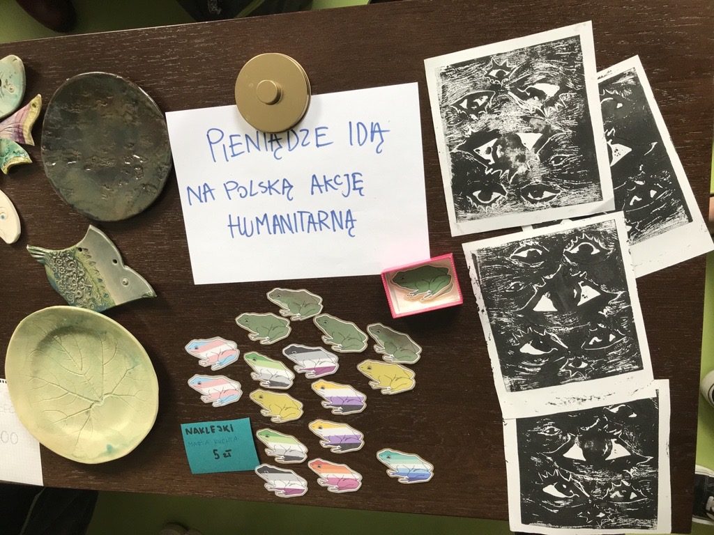 PLN 13,880 was collected for refugees from Ukraine. The money will be transferred in part to the Polish Humanitarian Action, and in part spent on the purchase and sending the most necessary articles to Ukraine itself. All the works on the auction and most of the handicraft products on the stands in schools in Solec St.and Nowowiejska St. were sold. The highest auction result was PLN 1070 – still life by Helena Pawłowska. The earrings made by Joanna Utri, Basia Owczarek, Maja Bialousz and Kamila Zygowska and stickers made by Marta Kuchta, as well as ceramics by a friend of Grażyna Bogusławska, were particularly popular. The stands in the school were served by students, the auction catalog and the auction itself were prepared by Julia Łukasiak, and the whole thing was supervised by Anita Klepaczewska.