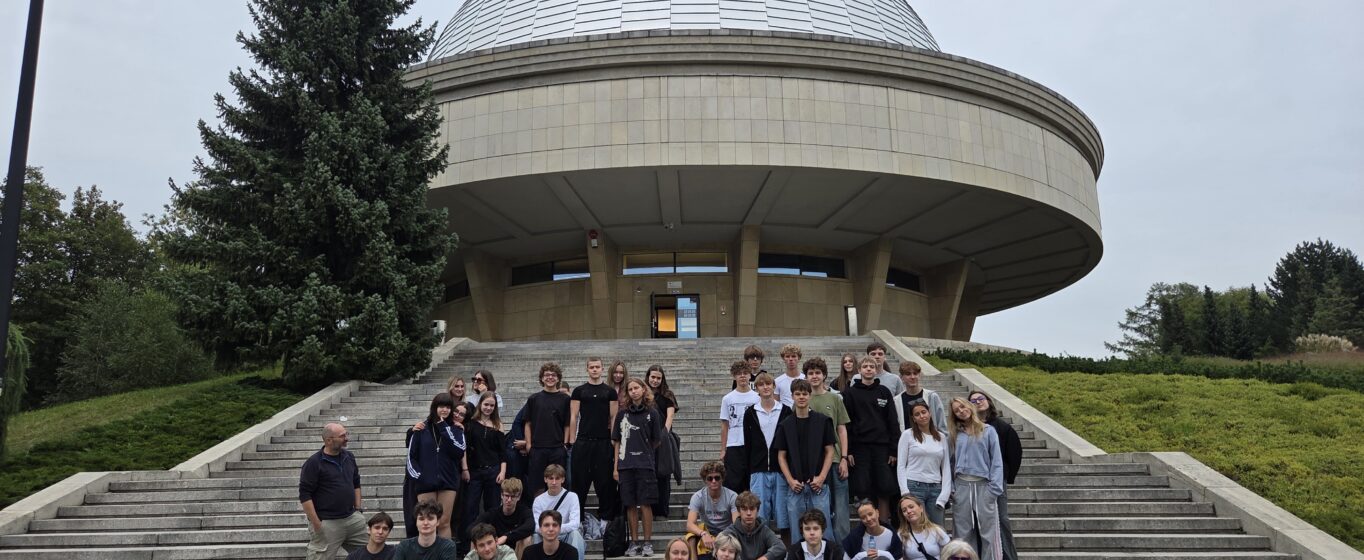 Od 10 do 12 września grupy rozszerzone z geografii oraz wiedzy o społeczeństwie wyjechały na wycieczkę do Górnośląsko-Zagłębiowskiej Metropolii (GZM). Pierwszego dnia odwiedziliśmy Wydział Nauk o Ziemi Uniwersytetu Śląskiego w Sosnowcu, gdzie wysłuchaliśmy dwóch wykładów dotyczących środowiska przyrodniczego regionu oraz przemian społecznych na Górnym Śląsku i w Zagłębiu Dąbrowskim. Popołudniu wybraliśmy się na spacer po Parku Śląskim. Tu dotarliśmy do Planetarium Śląskiego – największego planetarium w Polsce. Obejrzeliśmy tam sens zatytułowany 100 lat wieczności, a następnie udaliśmy się do jedynej w Polsce kolejki gondolowej znajdującej się poza obszarami górskimi. Z kolejki podziwialiśmy ogrom Parku Śląskiego (największego parku w Polsce), zoo i przykłady architektury space age.
