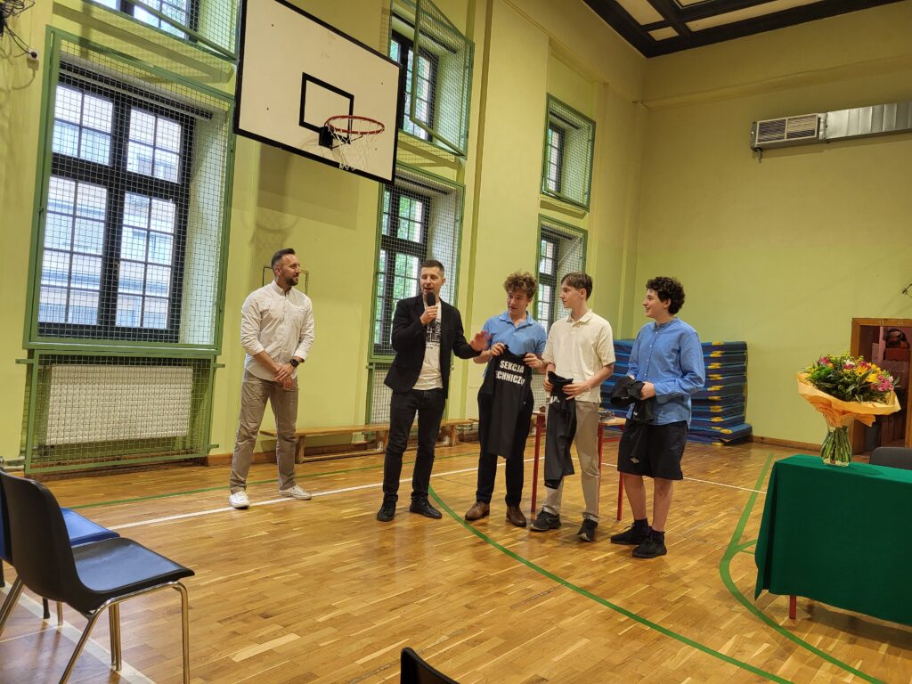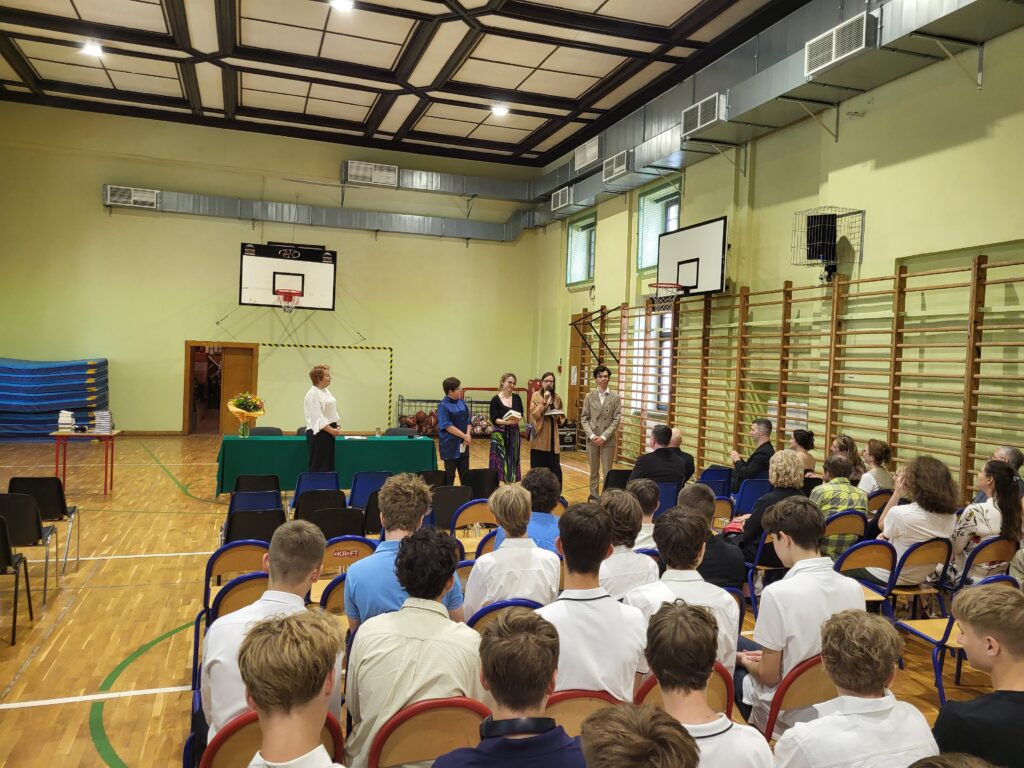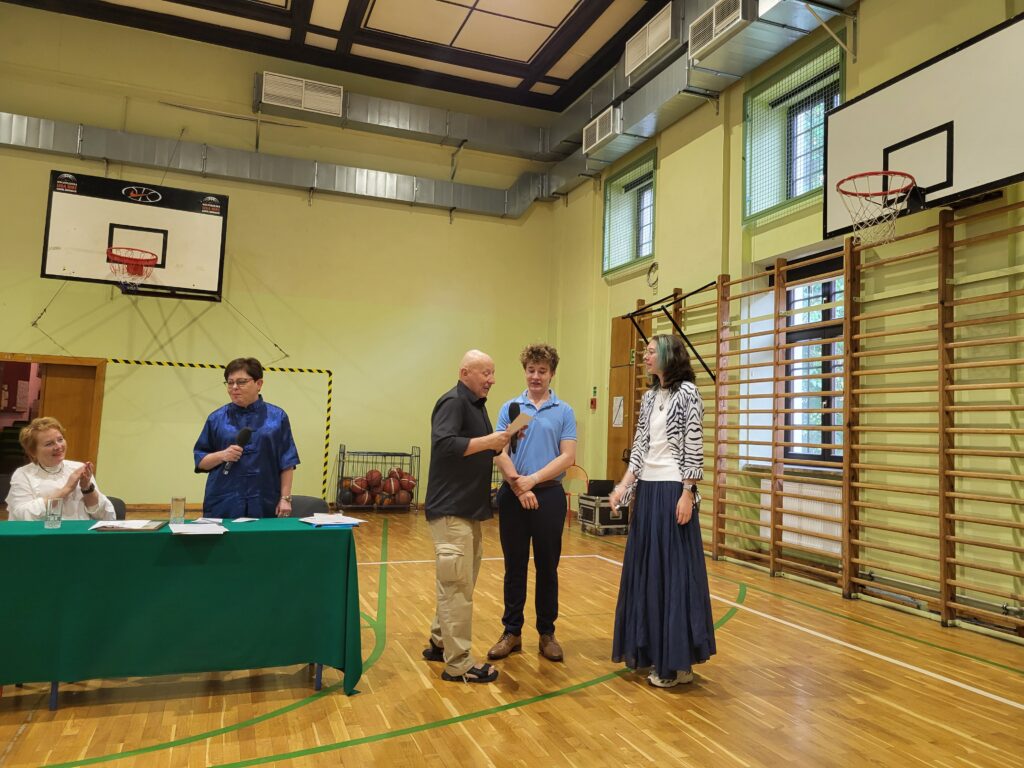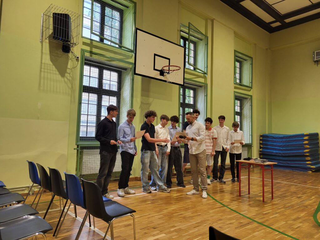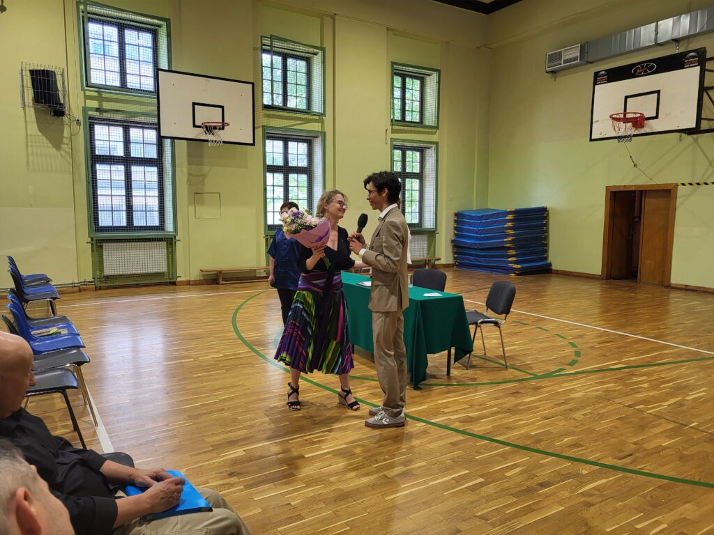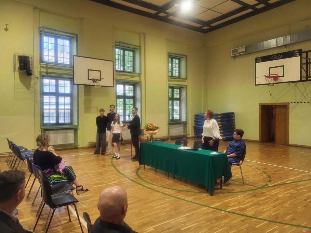 Dyrektor Anna Sobala-Zbroszczyk rozpoczęła zakończenie roku szkolnego od radosnej nowiny pomyślnego zdania przez wszystkich uczniów do następnej klasy i głos przekazała pani prezes Krystynie Norwie, która podsumowała udany rok i życzyła  wszystkim bezpiecznego powrotu z wakacji. Dyrektor Anna Sobala-Zbroszczyk potwierdziła, że mijający rok szkolny należy do bardzo dobrych, w którym uczniowie odnieśli sukcesy. Stanisław został laureatem olimpiady artystycznej oraz laureatem drugiego miejsca olimpiady języka polskiego. Olimpijczykiem opiekowały się Katarzyna Długołęcka i Zofia Łukomska-Chojecka. Natalia i Mikołaj znakomicie wypadli w konkursie logicznym. Ponadto Nina została laureatką 21. miejsca, a Nina (klasa maturalna), Juliusz i Leszek zostali finalistami olimpiady filozoficznej. To wszystko uczniowie osiągnęli pod kierunkiem Marcina Krupowicza.  Hela została wyróżniona przez Katarzynę Długołęcką za wytrwałość i dotarcie do ostatniego progu olimpijskiego. Dwoje uczniów, uczęszczających na zajęcia Grupy Calcullus zostało wyróżnionych przez Sławomira Jagiełłę za determinację w pokonywaniu trudności w poznawaniu teorii względności na poziomie akademickim.  Zosia, Berenika, Nadia, Maja  i Emilia stanowiły serce organizacyjne akcji na rzecz dzieci ze Zwierzyńca, a Antek, Stanisław, Julek, Kasia i Hania przygotowali dla gości grę miejską. Wszyscy wolontariusze otrzymali pluszowe nagrody i serdeczne gratulacje z rąk Anity Klepaczewskiej. W dziedzinie sztuki mówienia wyróżnieni zostali Mikołaj, Hubert, Filip, Hania, Stanisław, Iga , Nina, Maria i Zosia. Wspólnie dotarli do finału  Ligii Debatanckiej  pod opieką Katarzyny Nowak i Marcina Krupowicza. Krzysztof, Antoni, Michał, Maciej, Maks, Dawid, Mateusz, Jan i Gustaw zdobyli trzecie miejsce w turnieju piłkarskim na tegorocznym pikniku szkolnym. Wojciech Świątek złożył całej drużynie gratulacje.  Podziękował także kibicom i  nauczycielom-zawodnikom za sportowe zaangażowanie : bramkarzowi – Marcinowi Krupowiczowi, obrońcy – Aleksandrowi Pawlickiemu i napastnikowi – Sebastianowi Rajewiczowi. Hania, Jan, Julek oraz Julek W-Ż. otrzymali podziękowania od Marty Wierzbickiej-Kotte za energię i pracę przy organizowaniu konferencji Jasmun. Specjalistka od protokołu dyplomatycznego – Katarzyna Nowak także została doceniona. Sekcja techniczna tworzona przez Krzysztofa, Mikołaja  i Tomka również otrzymała podziękowania za sprawne funkcjonowanie. Na zakończenie głos zabrali członkowie Samorządu Szkolnego.